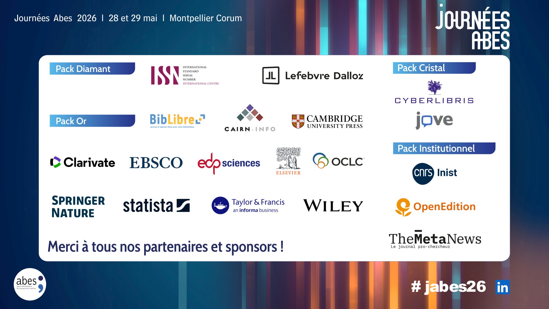 Page en cours de mise à jour : les vidéos des interventions présentées lors des Journées Abes 2024 seront progressivement mises en ligne.
