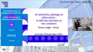La première édition des Journées d’étude de l’Abes s’est déroulée les 22 et 23 mai à l’ATRIUM de l’université de Montpellier Paul-Valéry. Le thème retenu « Des données pour le pilotage de la recherche : outils, cas d’usage et nouvelles collaborations » a pour objectif de regrouper différents acteurs et métiers de l’ESR (intendants de données, directions recherche ou pilotage, DSI, SCD…). Ce thème a été exploré sous forme de sessions plénières et d’ateliers.